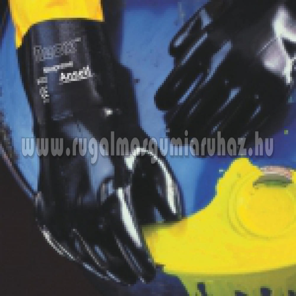 Steppelt kötött pamutkelméből készült, neoprénbe mártott kesztyű. Teljes hossza: 30,5 cm, 35,5 cm, 45,5 cm és 78,5 cm.