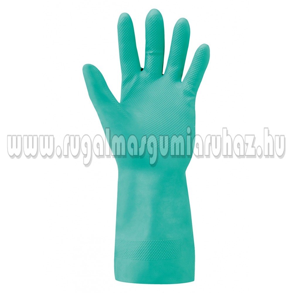 0,38 mm vastag nitrilből készült antisztatikus kesztyű, belül velúrkikészítéssel, a tenyéren és az ujjakon textúrált felülettel. Teljes hossza: 33 cm.
