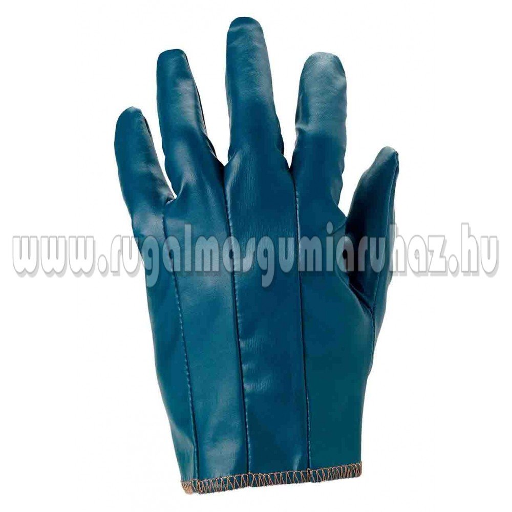 Nitrillel laminált kötött pamutkelméből varrt, kézhátán steppelt, átszúrásnak és dörzsölésnek ellenálló rugalmas kesztyű.