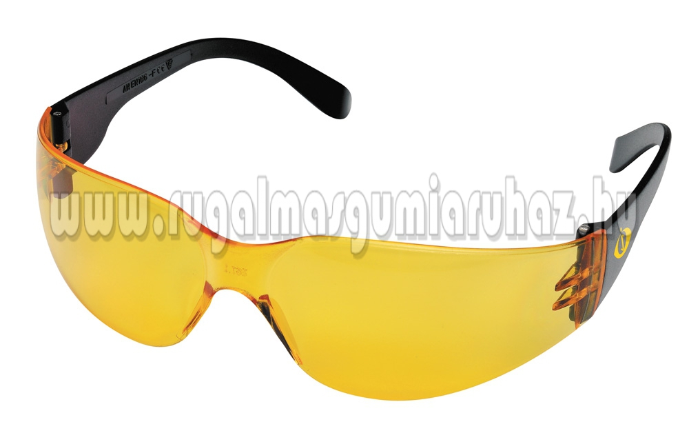 Polikarbonát látómezős, keret nélküli védőszemüveg (víztiszta, füstszínű, illetve sárga): keményített látómező, korszerű design.