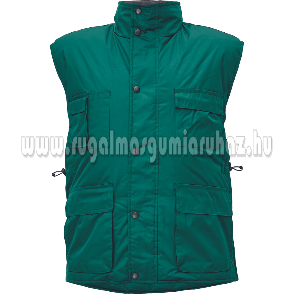 Melegen bélelt cipzáras mellény (gépi hímzésre alkalmas), dereka szűkíthető zsinórral.