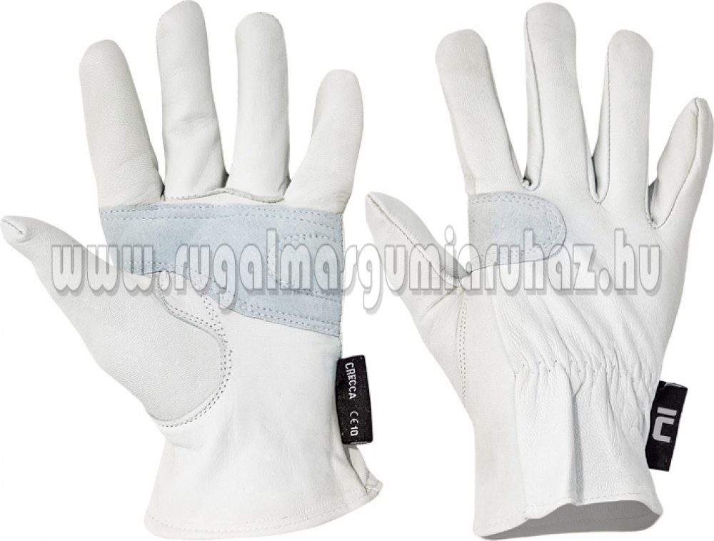 Mechanikai védőkesztyű erős kecskebőrből. Tenyéren szivaccsal párnázott. 1 csomagban 12 pár kesztyű található.