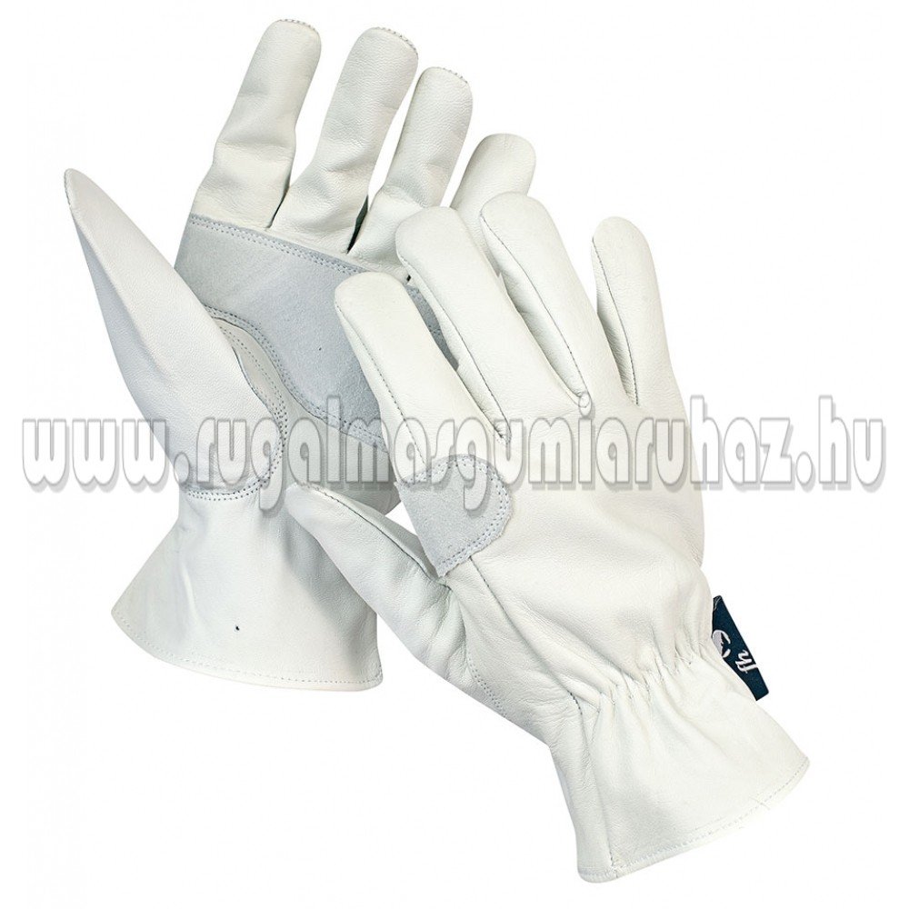 Mechanikai védőkesztyű erős kecskebőrből. Tenyéren szivaccsal párnázott.