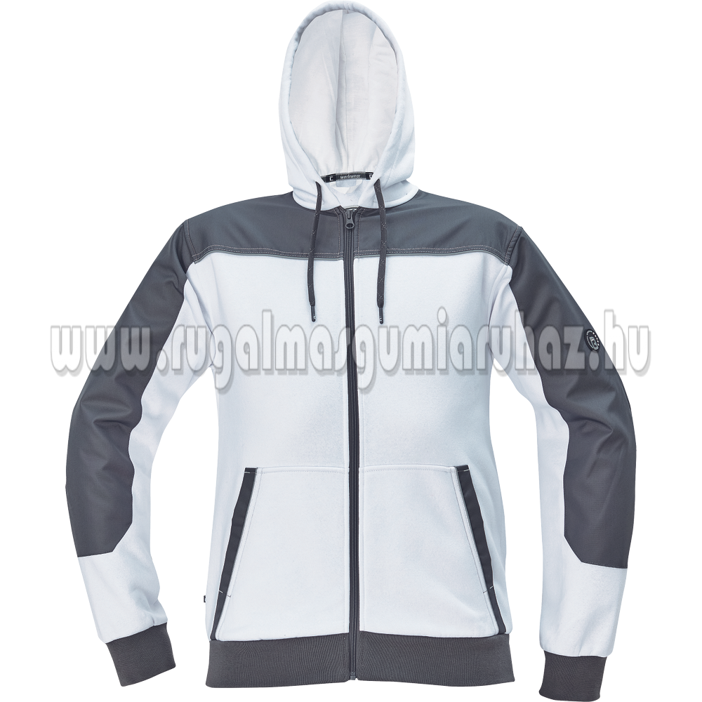 férfi zipzáras kapucnis kardigán; puha tapintású, belül fésült felületű anyagból; 2 elülső kenguruzseb; váll- és könyökrészek Oxford erősítéssel; elasztikus passzé az ujjakon és pulóver alján; hurkok, melyekkel csatlakoztatható a CREMORNE télikabáthoz