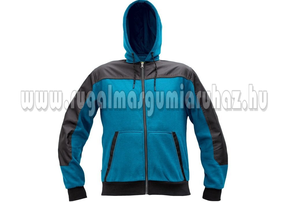 férfi zipzáras kapucnis kardigán; puha tapintású, belül fésült felületű anyagból; 2 elülső kenguruzseb; váll- és könyökrészek Oxford erősítéssel; elasztikus passzé az ujjakon és pulóver alján; hurkok, melyekkel csatlakoztatható a CREMORNE télikabáthoz