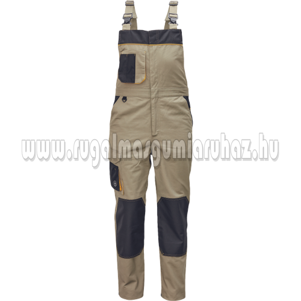 férfi mellesnadrág pamutgazdag anyagból; modern szabás; a derék hátul rugalmas anyagból készült; megerősített térdrész, térdvédőtartó zsebbel; 2 oldalsó zseb; 1 oldalsó többfunkciós zseb; tépőzáras hátsózseb; 1 mellkas multifunkciós zseb; D-gyűrű; kétirányú zipzár; hosszabbítható szár