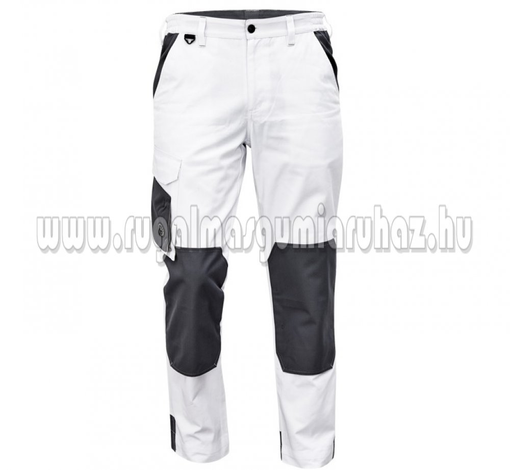 férfi munkanadrág pamutgazdag anyagból; modern szabás; megerősített térdrész, térdvédőtartó zsebbel; 2 oldalsó zseb; 1 többfunkciós zseb; tépőzáras hátsózseb; rugalmas derék; D-gyűrű; hosszabbítható szár