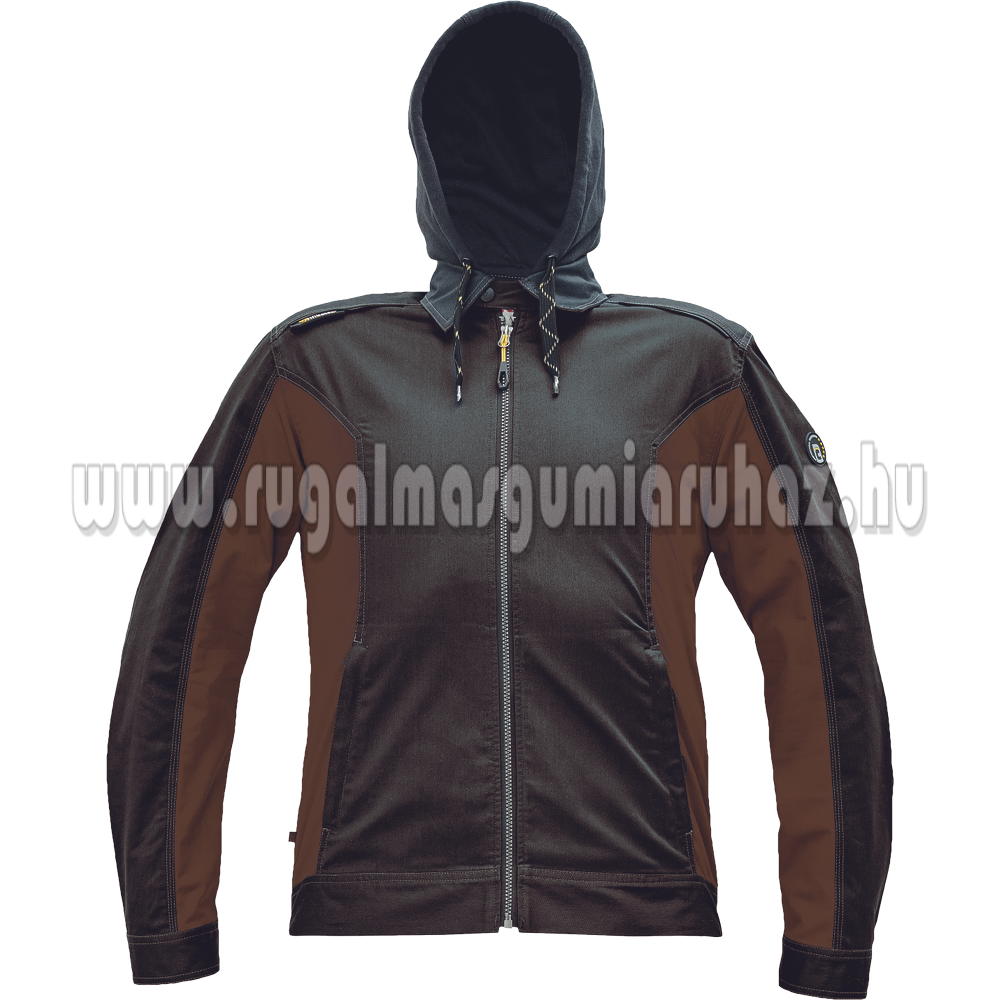 Férfi munkakabát; rugalmas, innovatív szövet TRIFIBETEX - ergonomikus szabás; levehető kapucni; Oxford erősítés a vállakon; 2 oldalsó zseb; belső telefontartó zseb; fényvisszavető kiegészítések