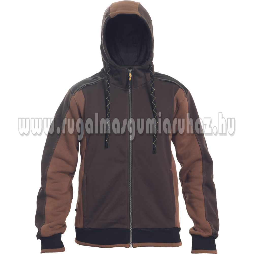 Férfi zipzáras kapucnis kardigán; belül bolyhos, puha anyagból; kényelmes viselet; Oxford erősítés a vállakon; 2 zipzáras oldalsó zseb; fényvisszavető kiegészítések; rugalmas passzé az ujjakon és a pulóver alján