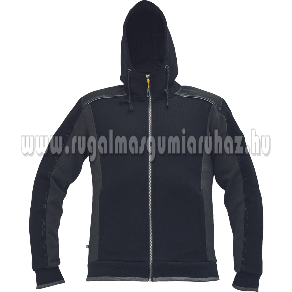 Férfi zipzáras kapucnis kardigán; belül bolyhos, puha anyagból; kényelmes viselet; Oxford erősítés a vállakon; 2 zipzáras oldalsó zseb; fényvisszavető kiegészítések; rugalmas passzé az ujjakon és a pulóver alján