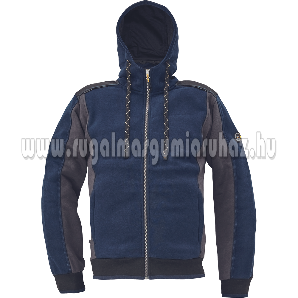 Férfi zipzáras kapucnis kardigán; belül bolyhos, puha anyagból; kényelmes viselet; Oxford erősítés a vállakon; 2 zipzáras oldalsó zseb; fényvisszavető kiegészítések; rugalmas passzé az ujjakon és a pulóver alján
