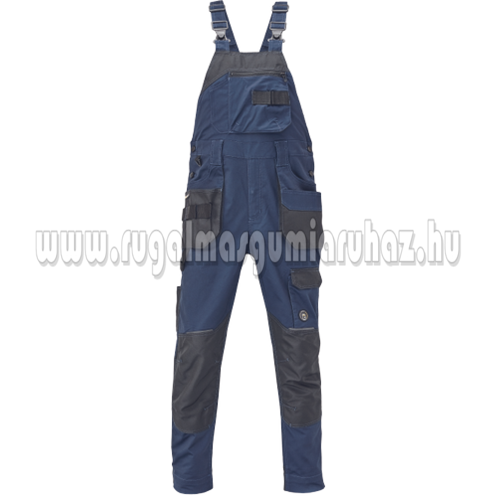 Férfi mellesnadrág; rugalmas, innovatív szövet TRIFIBETEX - ergonomikus szabás; a derékon hátul gumírozott; tartós tripla varrások a lábaknál és az ágyéknál; megerősített térdrész, térdvédőtartó zsebbel; tágas multifunkcionális első zsebek szerszámtartó pánttal; 2 hátsó zseb Oxford erősítéssel; a combon telefontartó zseb tépőzáras fedéllel; vonalzó zseb; késtartó zseb; kalapácstartó; D-gyűrű; szerszámtartó hurok a derékon; fényvisszavető kiegészítések; hosszabbítható szár