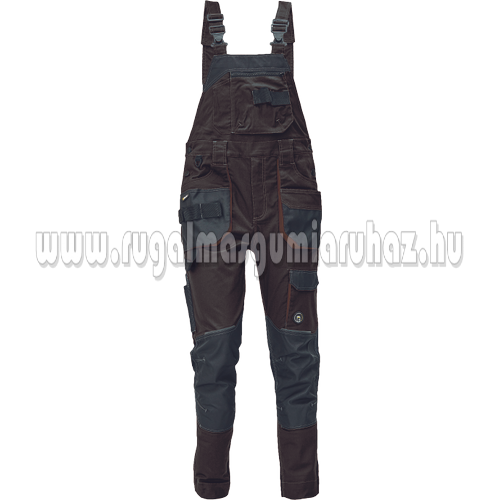 Férfi mellesnadrág; rugalmas, innovatív szövet TRIFIBETEX - ergonomikus szabás; a derékon hátul gumírozott; tartós tripla varrások a lábaknál és az ágyéknál; megerősített térdrész, térdvédőtartó zsebbel; tágas multifunkcionális első zsebek szerszámtartó pánttal; 2 hátsó zseb Oxford erősítéssel; a combon telefontartó zseb tépőzáras fedéllel; vonalzó zseb; késtartó zseb; kalapácstartó; D-gyűrű; szerszámtartó hurok a derékon; fényvisszavető kiegészítések; hosszabbítható szár