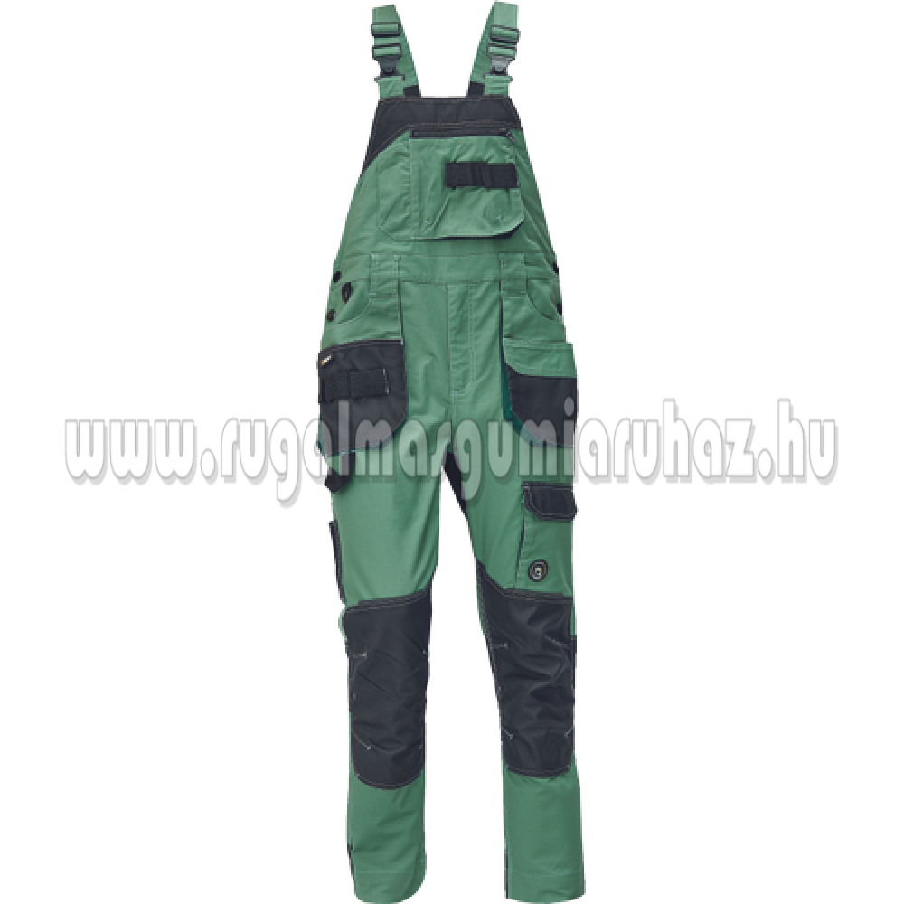 Férfi mellesnadrág; rugalmas, innovatív szövet TRIFIBETEX - ergonomikus szabás; a derékon hátul gumírozott; tartós tripla varrások a lábaknál és az ágyéknál; megerősített térdrész, térdvédőtartó zsebbel; tágas multifunkcionális első zsebek szerszámtartó pánttal; 2 hátsó zseb Oxford erősítéssel; a combon telefontartó zseb tépőzáras fedéllel; vonalzó zseb; késtartó zseb; kalapácstartó; D-gyűrű; szerszámtartó hurok a derékon; fényvisszavető kiegészítések; hosszabbítható szár