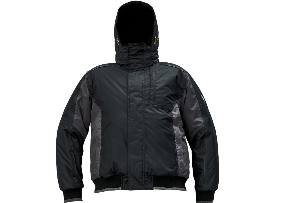 Férfi téli pilóta kabát levehető kapucnival; 1 mellkasi zipzáras zseb; 2 oldalsó zipzáras zseb; 2 belső zipzáras zseb; tépőzáras borítás zipzáron; a kapucni húzózsinórral állítható; polár gallér és kapucni; elasztikus passzé az ujjakon és az deréknál; hímezhető hátrész; fényvisszavető kiegészítések
