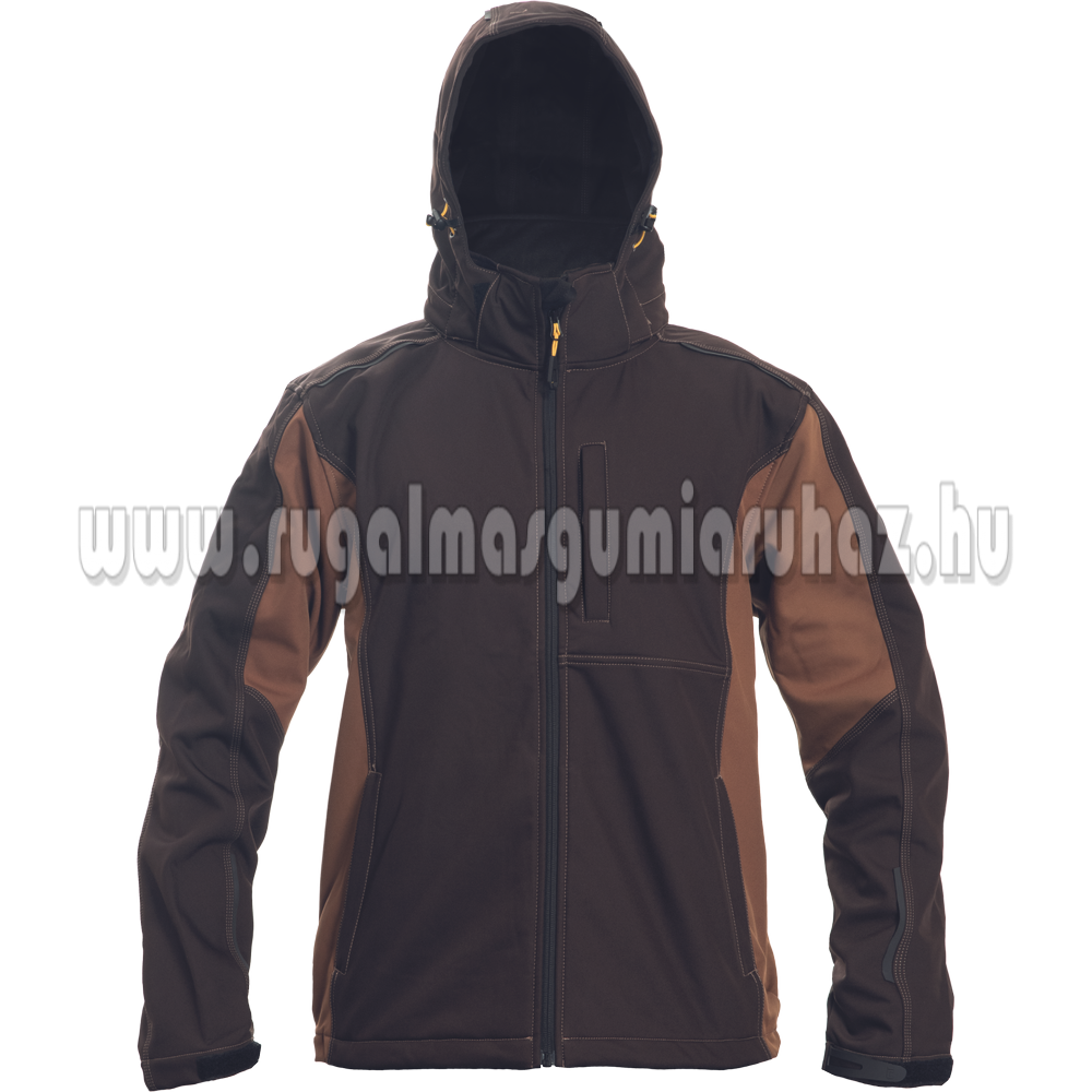 Férfi sofsthell kabát levehető kapucnival; 3 zipzáras zseb; 2 belső zseb; fényvisszaverő kiegészítések; az ujja tépőzárral állítható; a derék húzózsinórral állítható