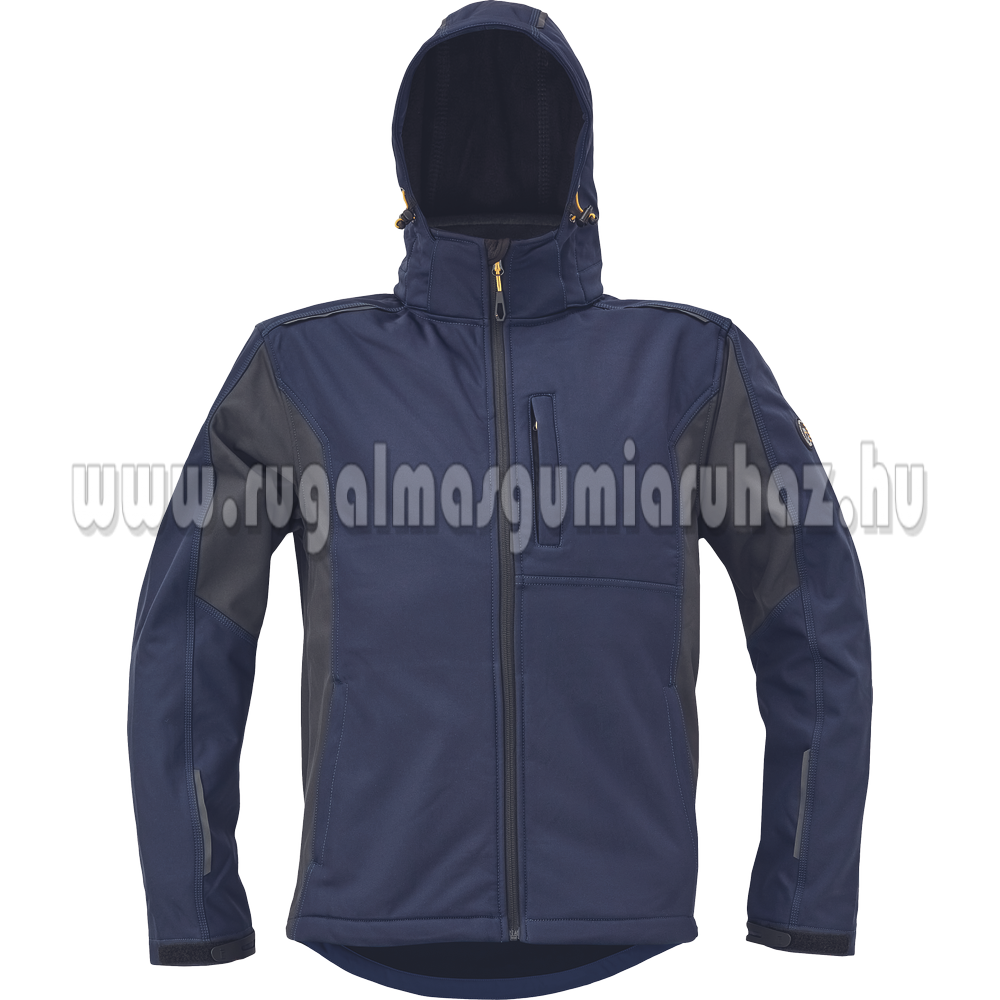 Férfi sofsthell kabát levehető kapucnival; 3 zipzáras zseb; 2 belső zseb; fényvisszaverő kiegészítések; az ujja tépőzárral állítható; a derék húzózsinórral állítható