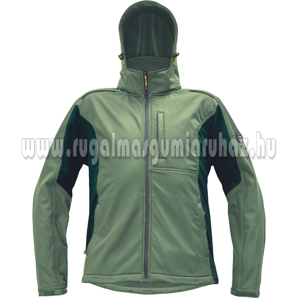 Férfi sofsthell kabát levehető kapucnival; 3 zipzáras zseb; 2 belső zseb; fényvisszaverő kiegészítések; az ujja tépőzárral állítható; a derék húzózsinórral állítható