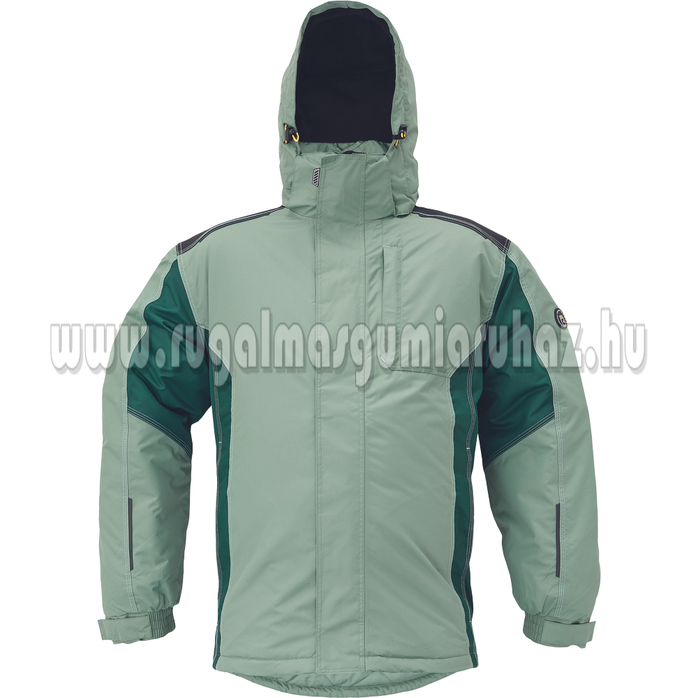 Férfi téli kabát levehető kapucnival; hosszított hátsó rész; 1 mellkasi zipzáras zseb; 2 oldalsó zipzáras zseb; 2 belső zipzáras zseb; tépőzáras borítás zipzáron; a kapucni húzózsinórral állítható; polár gallér és kapucni; rugalmas passzé az ujjakon és az deréknál; hímezhető hátrész; fényvisszavető kiegészítések