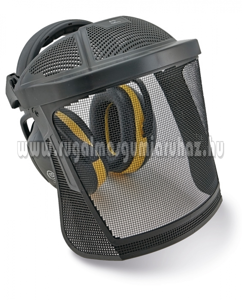 ED 2H fültok és hálós arcvédő kombinációja. Rozsdamentes acél arcvédő háló. Maximális komfort, minimális tömeg, ha nincs szükség a fejvédő viselésére: EN 352-1:2002 (fültok), EN 166 (arcvédő).