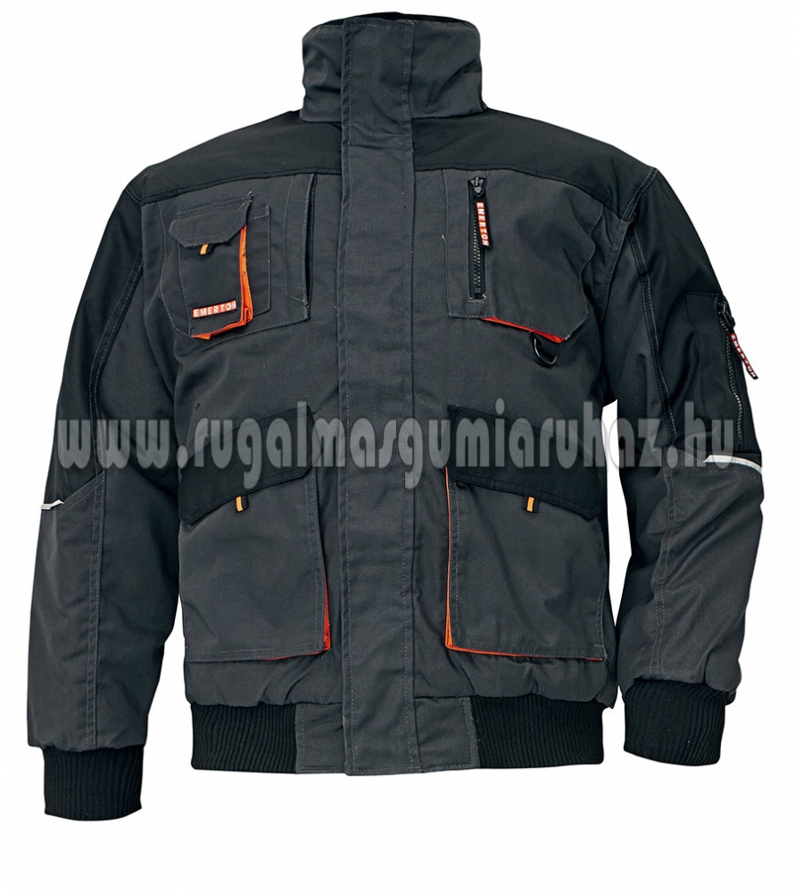 Téli dzseki. Alapanyag: 80 % poliészter 20 % pamut. 280 gr/m2. A bélés és a köztes bélés 100 % poliészter