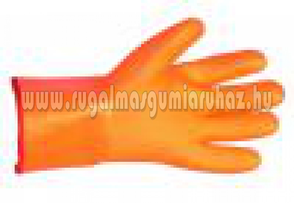 Kötött pamutkelméből varrt, PVC-be mártott, kötött kelmével bélelt kesztyű poliuretán belső réteggel. Teljes hossza: 35 cm.