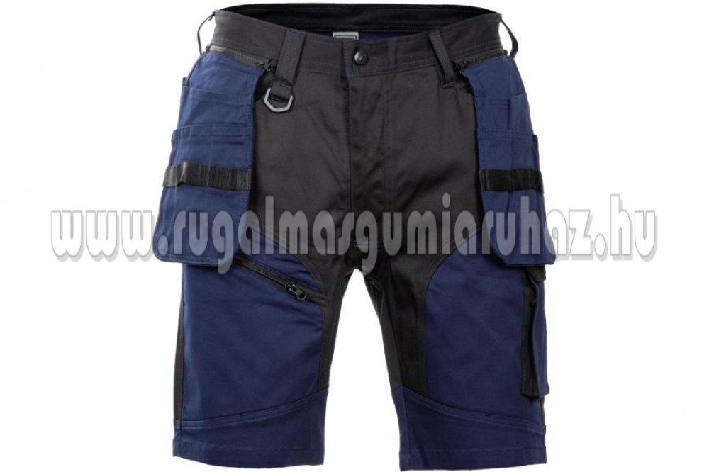 Minőségi férfi rövidnadrág rugalmas anyagból; multifunkcionális zsebek; 2 extra levehető multifunkcionális szerszámtartó zseb; dekoratív varrás