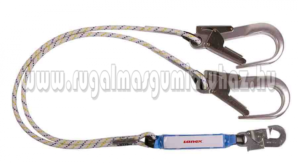 Energiaelnyelő két kötéllel és kampóval. Az energiaelnyelő magas szerkezetekre, oszlopokra és létrákra való mászásnál használható. EN 355 (CE 0082).