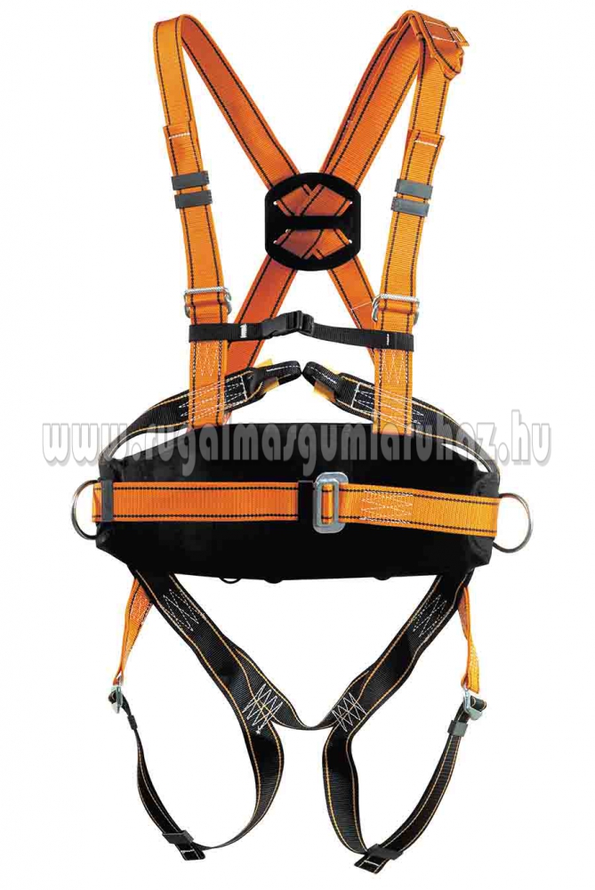 M-XL Széles alkalmazási körű, univerzális típusú zuhanásgátló heveder hátsó és elülső felfüggesztő elemmel, oldalsó gyűrűkkel felszerelt helyzetbeállító derékövvel, valamint állítható váll-, illetve combhevederekkel. A hátsó felfüggesztő elemhez vezető heveder meghosszabbított. Megfelel az EN 361 és EN 358 szabványoknak (CE 0082).
