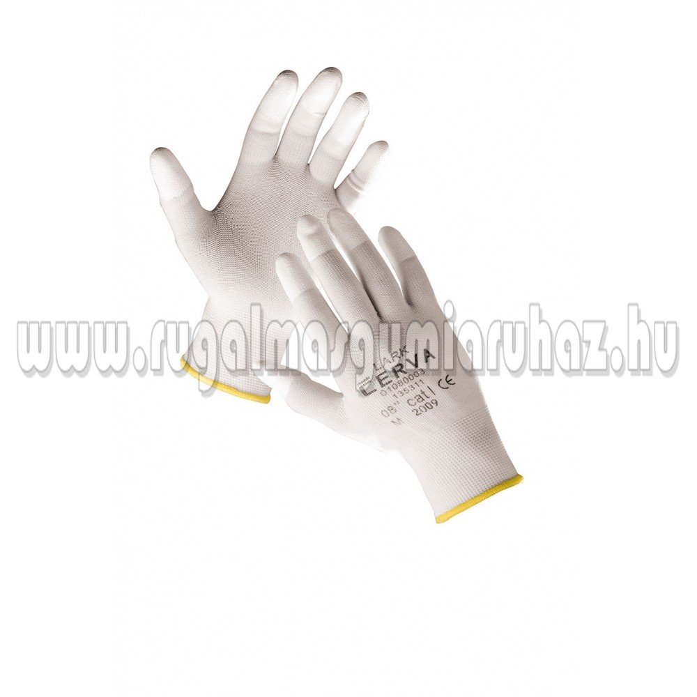 Kötött, varratmentes nylon kesztyű vékony poliuretán bevonatú ujjhegyekkel és rugalmas mandzsettával.