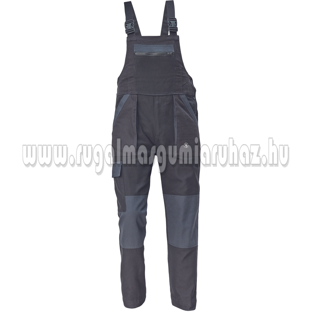 Férfi mellesnadrág rugalmas derékkal, széles pántokkal, műanyag csatokkal; 2 első zseb, 1 oldalzseb, 1 nagy mellzseb, 2 hátsó zseb; megerősített térdrész; a szárak hossza meghosszabbítható; anyag: 100% pamut, anyagvastagság: 260 g/m58