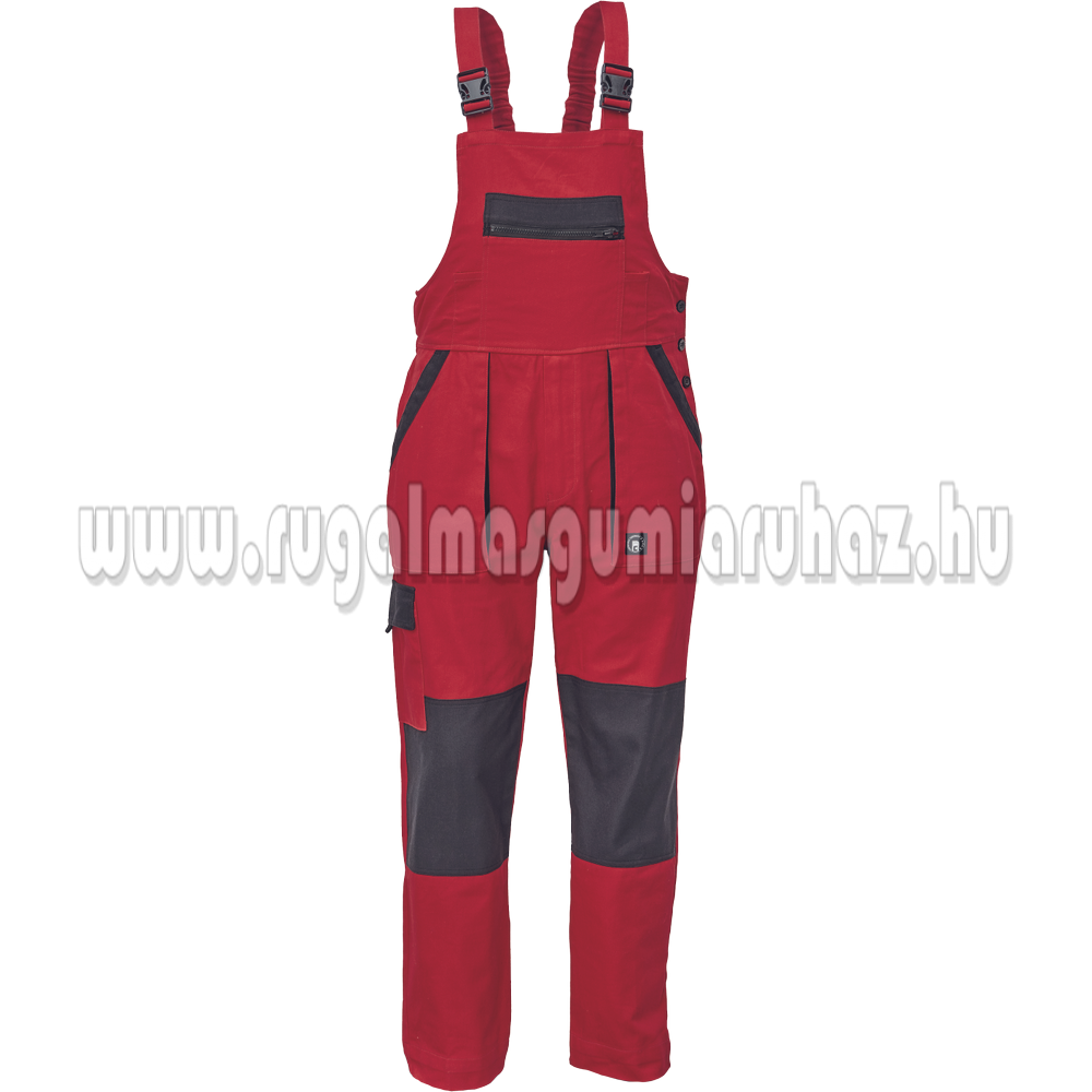 Férfi mellesnadrág rugalmas derékkal, széles pántokkal, műanyag csatokkal; 2 első zseb, 1 oldalzseb, 1 nagy mellzseb, 2 hátsó zseb; megerősített térdrész; a szárak hossza meghosszabbítható; anyag: 100% pamut, anyagvastagság: 260 g/m3