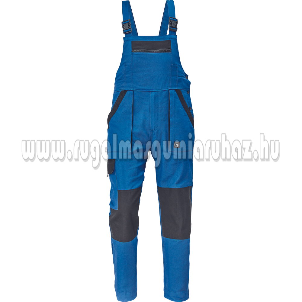 Férfi mellesnadrág rugalmas derékkal, széles pántokkal, műanyag csatokkal; 2 első zseb, 1 oldalzseb, 1 nagy mellzseb, 2 hátsó zseb; megerősített térdrész; a szárak hossza meghosszabbítható; anyag: 100% pamut, anyagvastagság: 260 g/m30