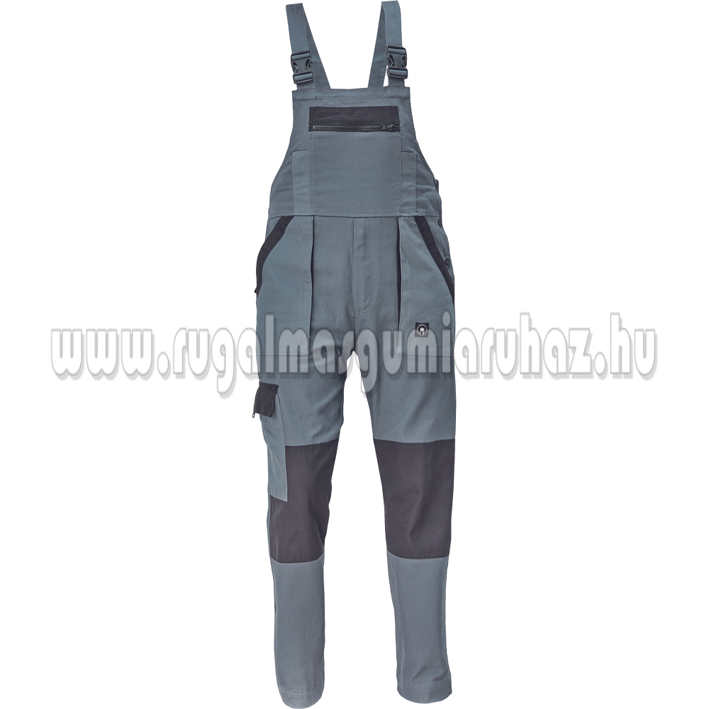 Férfi mellesnadrág rugalmas derékkal, széles pántokkal, műanyag csatokkal; 2 első zseb, 1 oldalzseb, 1 nagy mellzseb, 2 hátsó zseb; megerősített térdrész; a szárak hossza meghosszabbítható; anyag: 100% pamut, anyagvastagság: 260 g/m72