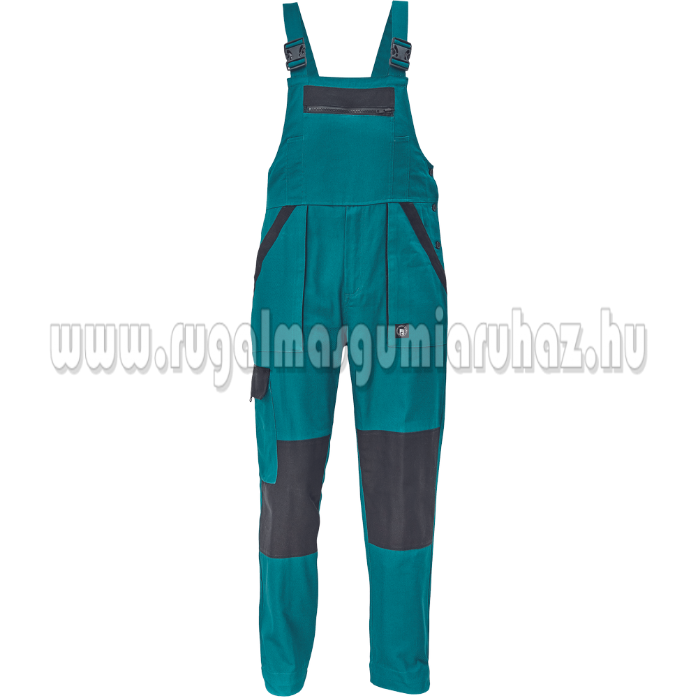 Férfi mellesnadrág rugalmas derékkal, széles pántokkal, műanyag csatokkal; 2 első zseb, 1 oldalzseb, 1 nagy mellzseb, 2 hátsó zseb; megerősített térdrész; a szárak hossza meghosszabbítható; anyag: 100% pamut, anyagvastagság: 260 g/m2