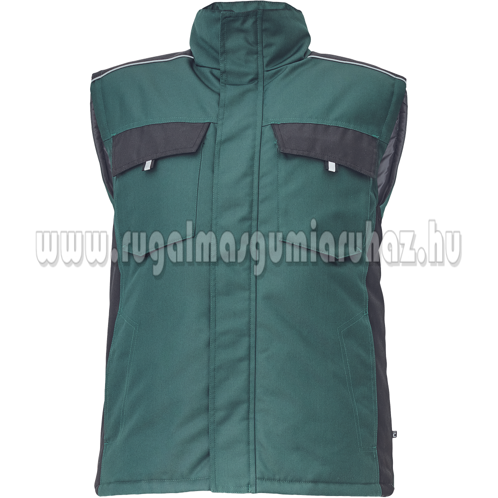 Férfi, könnyű, cipzáras mellény; rugalmas derék; 2 oldalsó zseb, 2 cipzáras mellzseb;Szabványok:EN ISO 13688 ;Jellemzők:szélálló, vízálló
