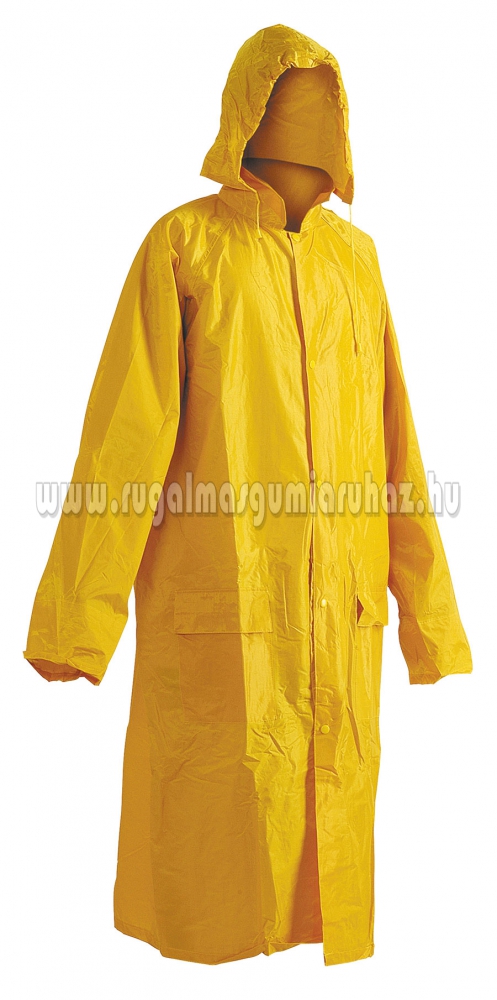 Esővédő kabát csuklyával, lehegesztett varratokkal, praktikus tartóban.