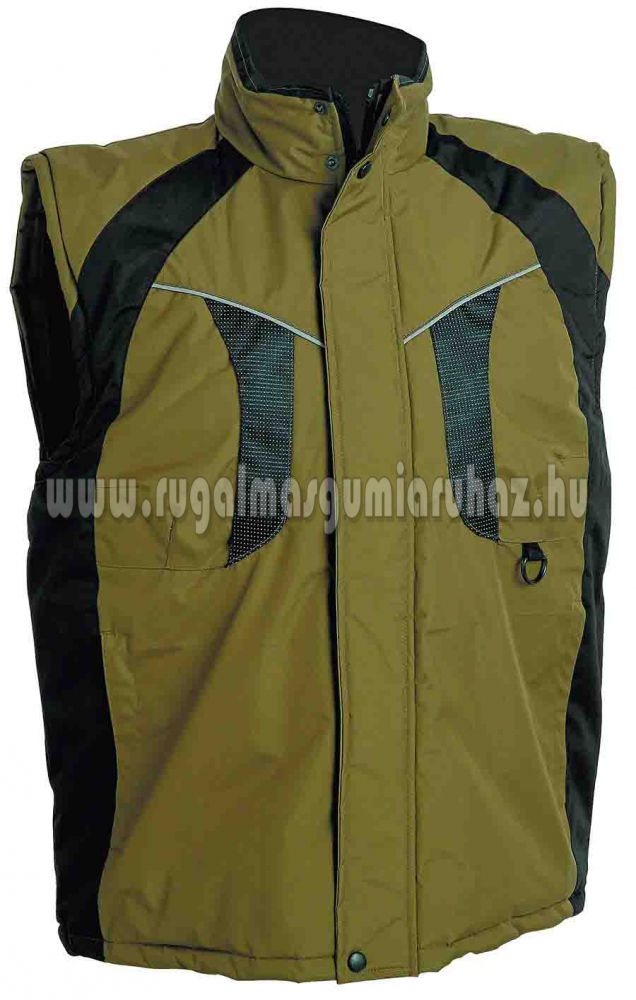 Melegen bélelt mellény, lehegesztett varratokkal, dereka szűkíthető zsinórral, gépi hímzésre alkalmas.