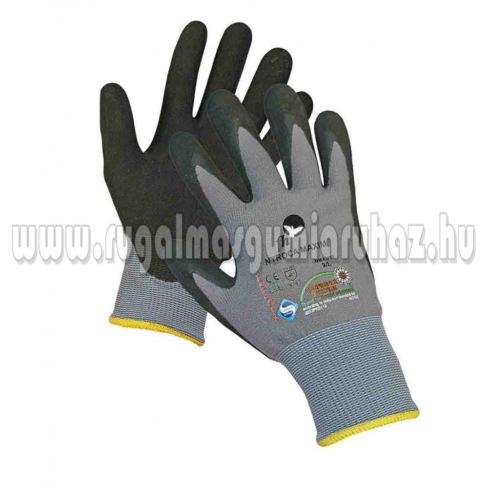 Védőkesztyű, nylon/lycra dzsörzé, mikroporózus nitril mártással. Kiváló folyadékállóság, jól tapad minden helyzetben: száraz, vizes és olajos környezetben is.