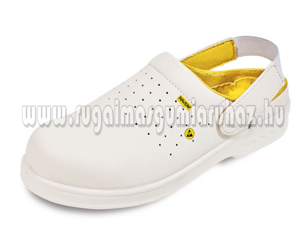 ESD biztonsági klumpa sarokpánttal, kompozit orrmerevítővel. Felsőrésze szintetikus, lélegző műbőrből. Üzemanyagálló PU talp, energiaelnyelő sarok.