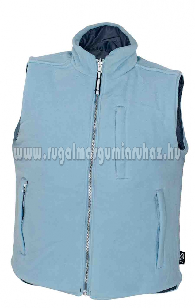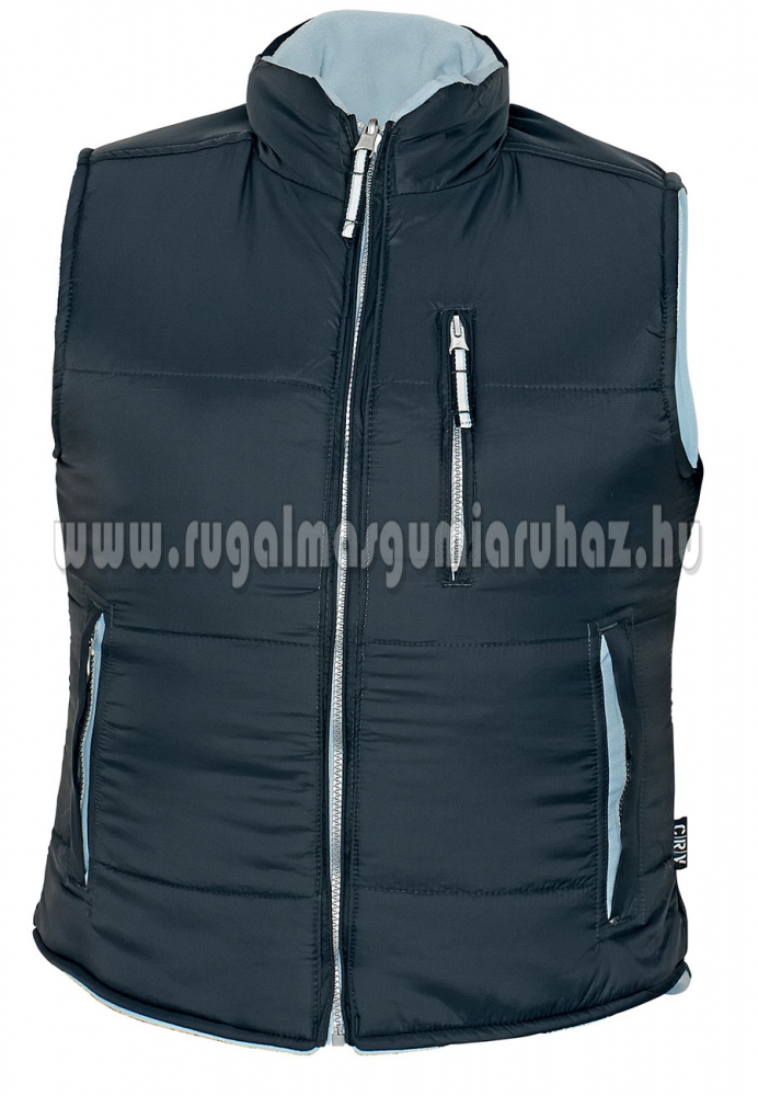 Női kifordítható melegen bélelt mellény álló gallérral és hosszított derékkal hátul. Poliészter polár és impregnált nylon anyag kombinációja. Praktikus zsebek mindkét oldalon.