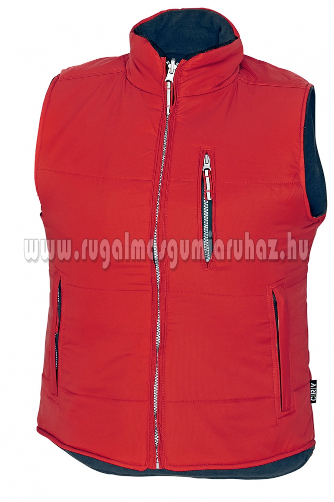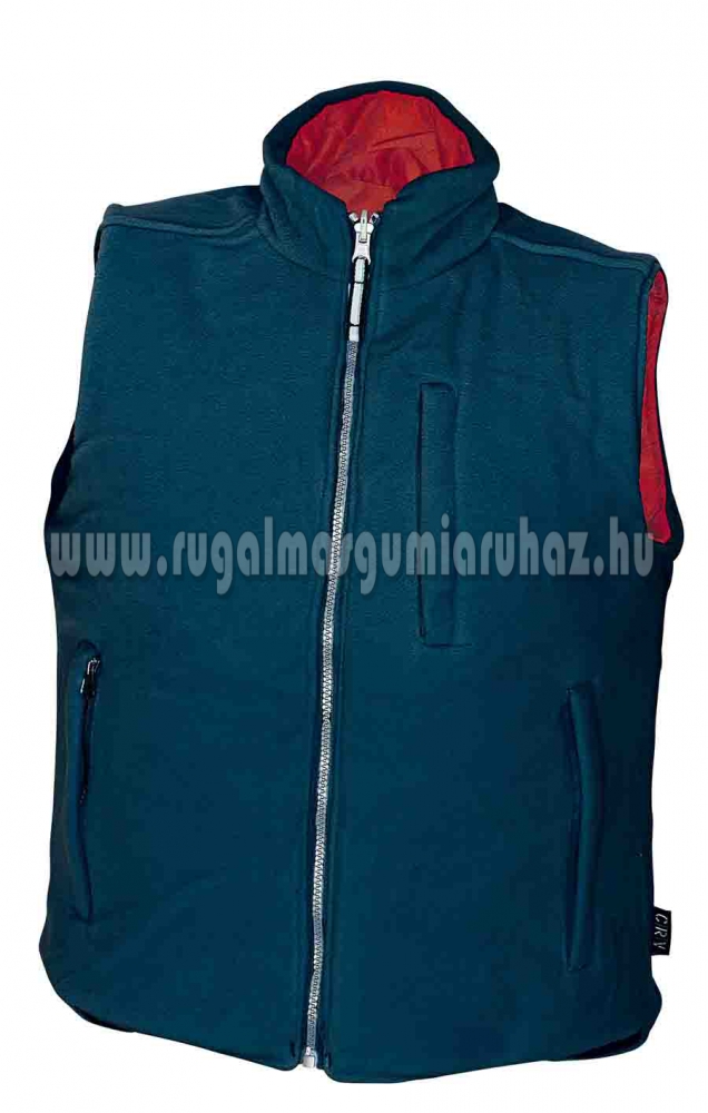 Női kifordítható melegen bélelt mellény álló gallérral és hosszított derékkal hátul. Poliészter polár és impregnált nylon anyag kombinációja. Praktikus zsebek mindkét oldalon.