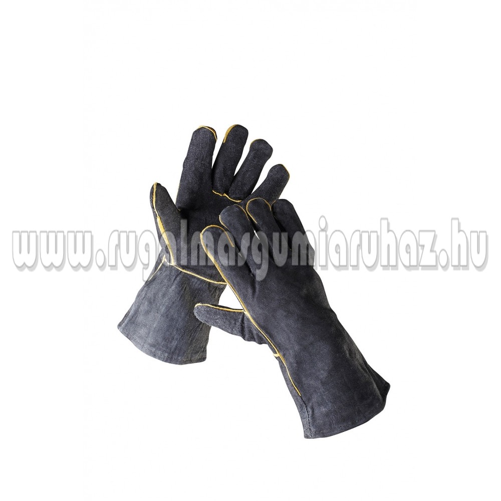 35 cm hosszú, hasított marhabőr kesztyű pamut béléssel és fedett varratokkal. Tanúsítvány: hegesztés - A típus