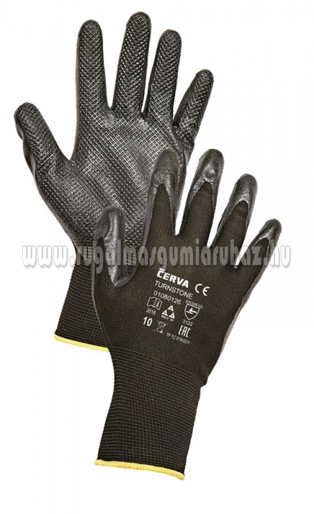 Kötött poliészter védőkesztyű tenyéren és az ujjain különleges, csúszásbiztos nitril mártással, rugalmas mandzsettával.