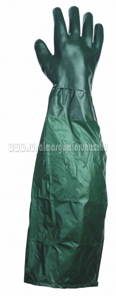 Varrott pamut kesztyű, nitril/PVC-be mártott, véd a mechanikus és vegyi veszélyek ellen, 65 cm hosszú alkarvédő.