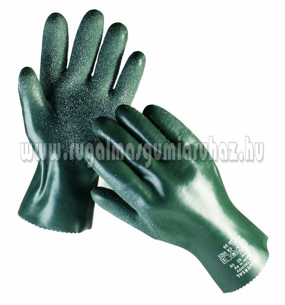 Varrott pamut kesztyű, nitril/PVC-be mártott, véd a mechanikus és vegyi veszélyek ellen, nagyság-hossz: 32cm=7-10. 1 csomagban 12 pár kesztyű található.